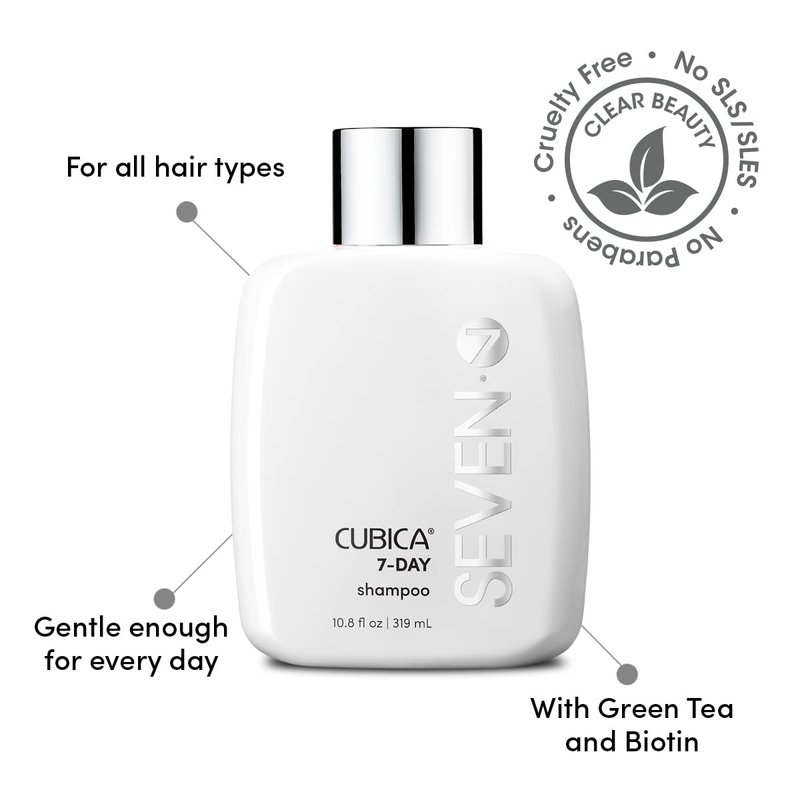SEVEN haircare - Cubica 7-DAY shampoo with Biotin & Green Tea Extract - Gentle Shampoo for Any Hair Type - Add Shine and Moisture to Hair - Sulfate Free & Paraben Free - 10.8 oz