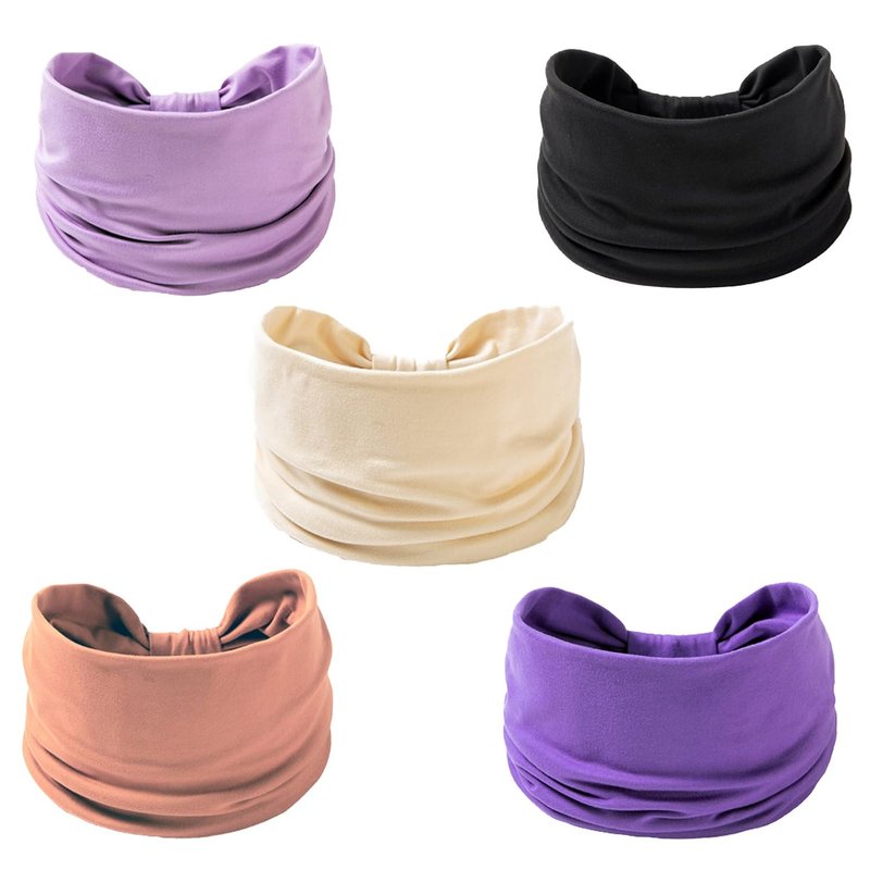 - 【Versatile and Stylish】Our fashion headband set includes 5 solid colors, Black, Brown, Purple, Light Purple and Creamy-white. They are not only perfect for sports like yoga, running, hiking, or cycling but also great for attending a party or just going about your daily life. You can even use them as a balaclava, wristband, scarf, neck gaiter, helmet liner, mask, or fashion headwrap.