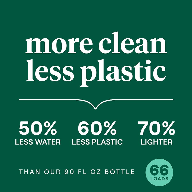 - Small dose, big clean: 60% less plastic, 50% less water, and 75% lighter than our laundry detergent liquid 100 fl oz bottle