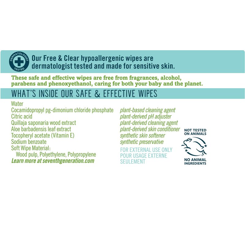 Seventh Generation Baby Wipes, Free & Clear Unscented and Sensitive, 30 count Travel Pack