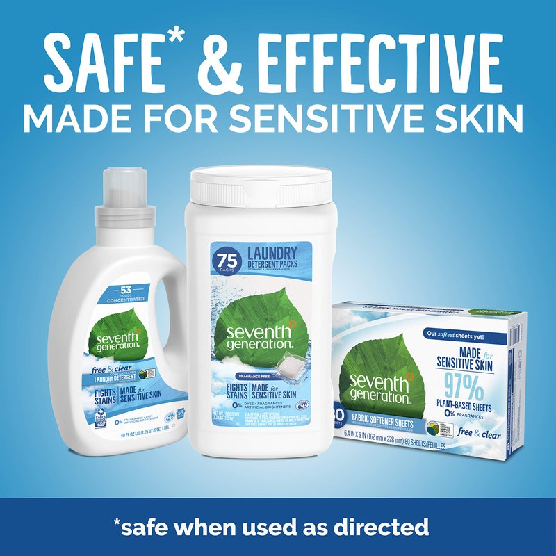 Seventh Generation Dryer Sheets Laundry Fabric Softener, Free & Clear Made for Sensitive Skin, 80 Sheets