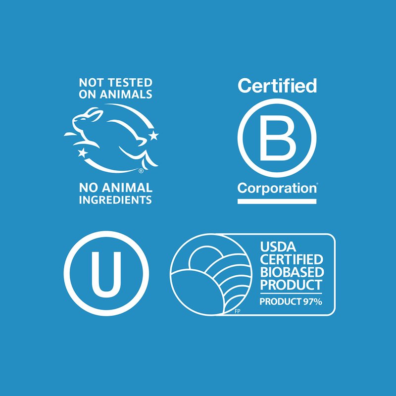 - Unscented fabric softener 97% plant-based sheets and USDA Certified Biobased Product 97%
