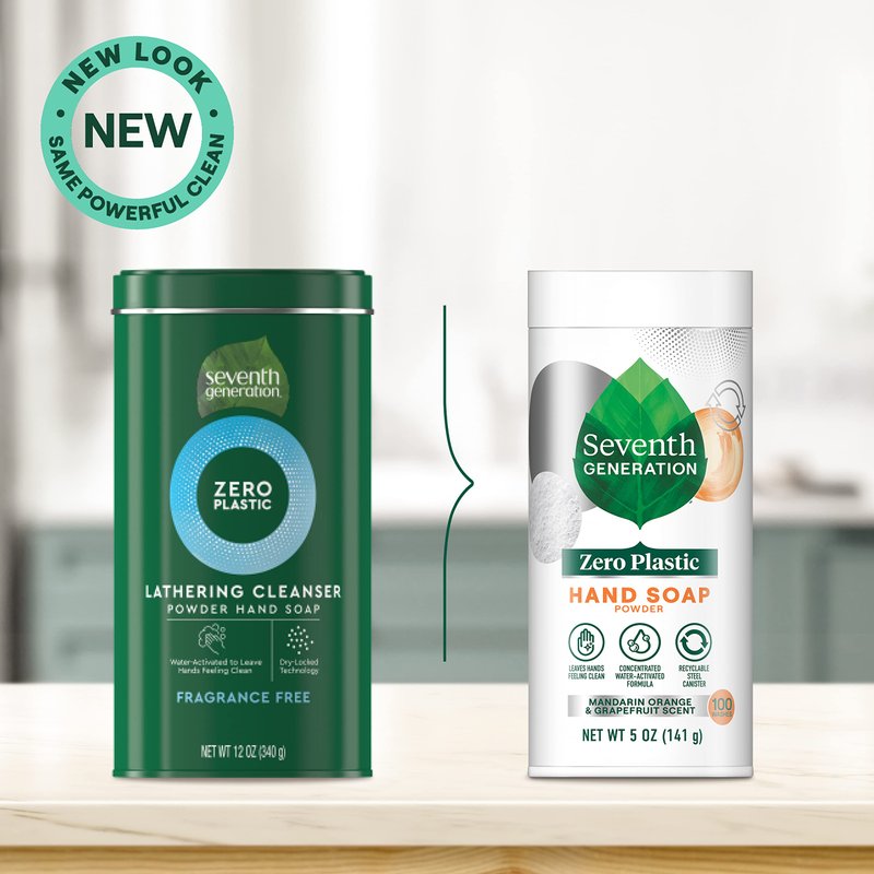 Seventh Generation Zero Plastic Hand Wash Powder Lathering Cleanser Mandarin Orange and Grapefruit Foaming 5 oz