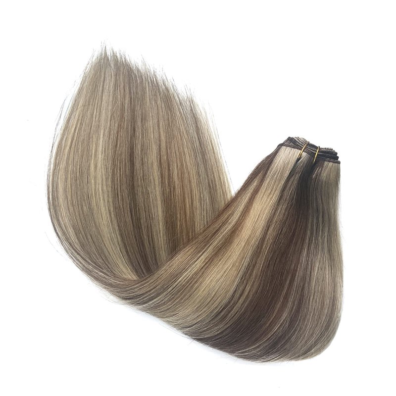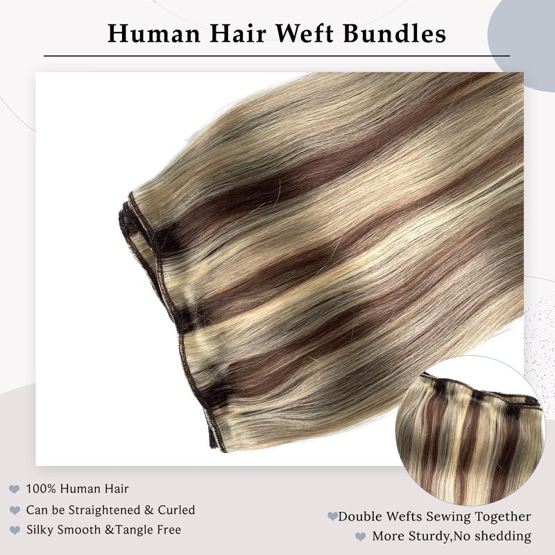 Ubetta weft hair extensions human hair weave bundles is of good quality in inexpensive price, sew hair extensions can be naturally blended with your own hair and can be washed, flat ironed, or curled by using hot tools, just like your own hair, no shedding, no tangles, no smell, silky soft. If you want to add hair length or volume to your own hair, balayage brown and blonde highlights weft hair extensions human hair sew in extensions is a perfect choice.