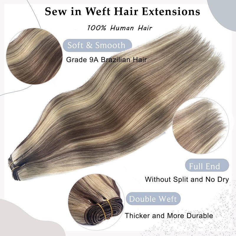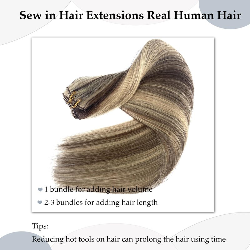 - 【Sew in Hair Extensions Real Human Hair】--Ubetta sew in hair extensions made of 100% real virgin human hair, all cuticle aligned in one direction, soft, bouncy, natural hair volume with healthy hair end, can be blended naturally with any texture hair. Hair wefts sew in weave bundles human hair extensions used to increase hair volume and length to your hair, or add some ombre brown and blonde balayage highlights colors to your hair.