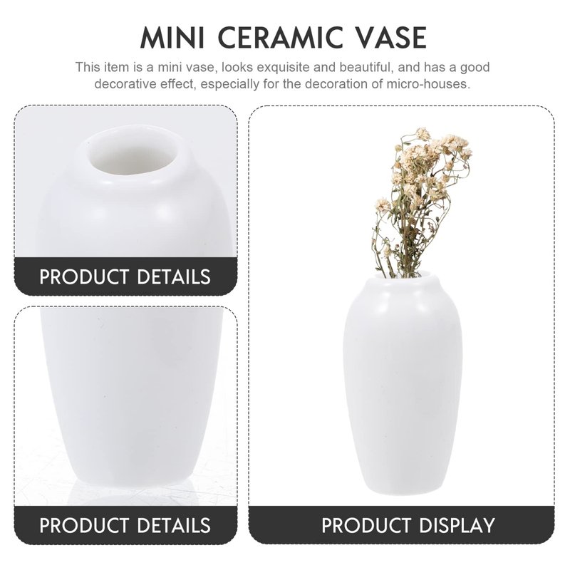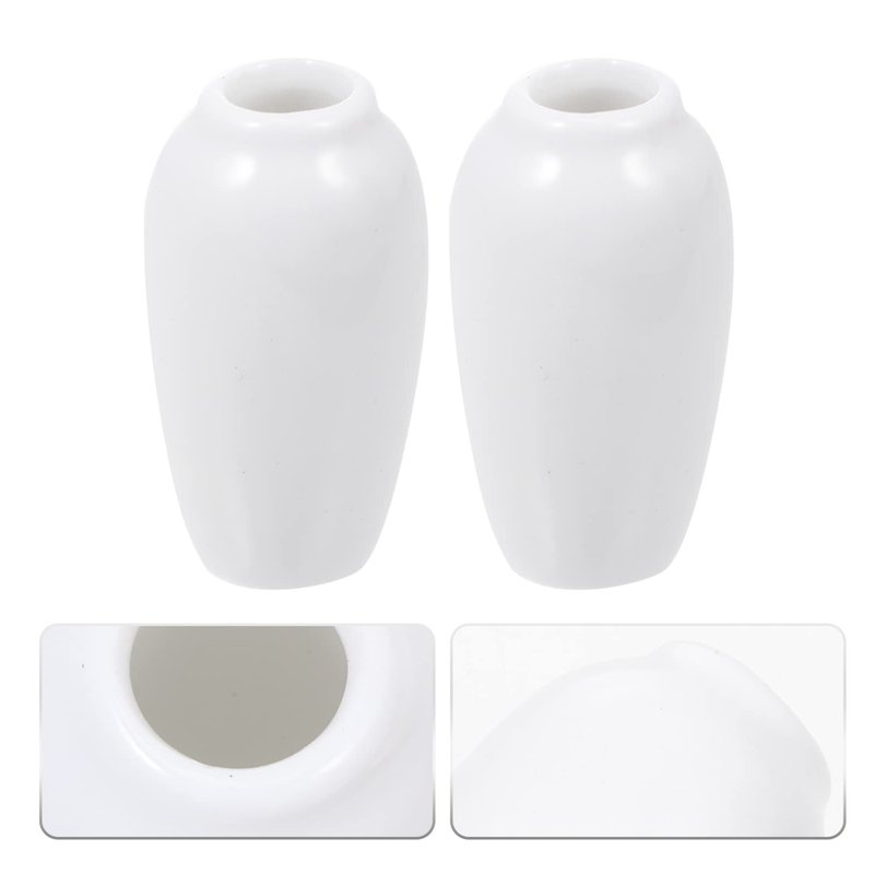 SEWACC 2Pcs Miniature Ceramic Vase Dollhouse Mini Vase Model Furniture DIY Doll House Vase Micro Landscape Fairy Garden Decoration ( White )