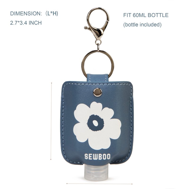 SEWBOO Sanitizer Holder with Travel Bottle Refillable Mini Travel Hand Sanitizer Keychain Holder for Backpack & Purse (Ash Blue)