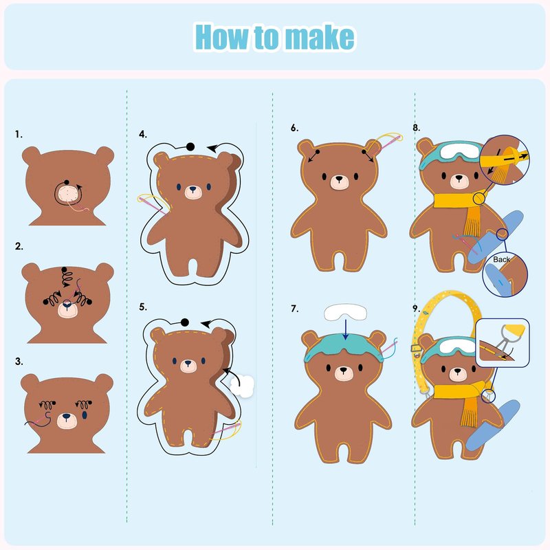 Sewing Kit for Beginner Kids Arts & Crafts Soft Toy My First Craft Set Includes Snowboarding Bear with Fun Shoulder Strap Instructions & Plush Felt Materials for Learn to Sew, Embroidery for 6 Years