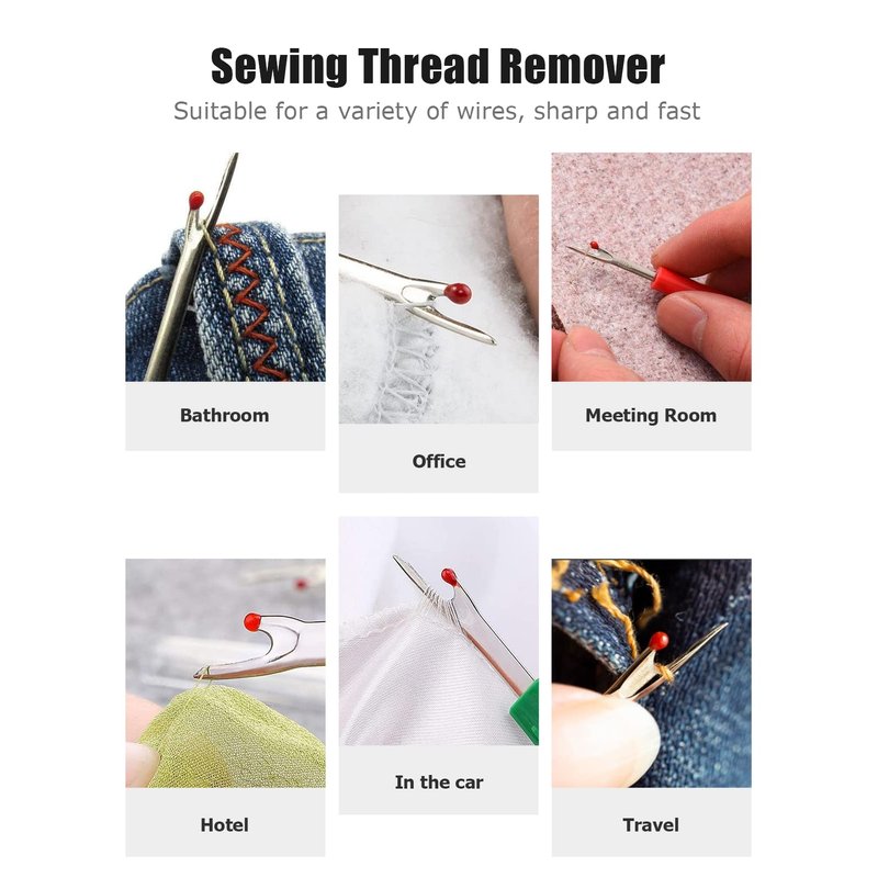 - Sewing Ripper with Cover: The handle and housing are plastic, and the ripper is metal, which is hard and durable and not easy to break. The prongs are very sharp for easy stitch removal. Each has its own plastic cover, which you can cover when not in use to prevent yourself from hurting yourself, and can be added to the rear to extend the handle when in use. The red looks stand out, making it easy to find it in your sewing box.