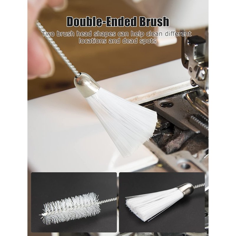 - Double Ended Sewing Machine Brush: Double ended different hardness bristles are much easier to clean the hard reach place. It is ideal for cleaning of cotton velvets on the shuttle to keep your sewing machine clean. Made of nylon and stainless steel, it is durable and the bristles are not easy to fall off.