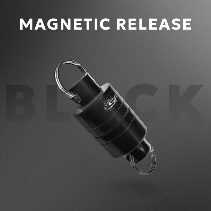 SF Strongest Magnetic Release Holder Keychain Fly Fishing Net Retractor Magnet Clip with Coiled Lanyard Carabiner - Black