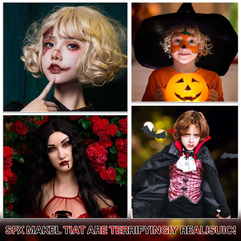 - Washable Fake Blood – With 2 different type of fake blood, the sticky blood gel with a viscous syrup-like texture, doesn't flow or dry. fake blood spray is bright red that is fluid and realistic but dries slowly. You can use both of these Halloween blood to create any fx makeup you want, such as cosplay vampire, Zombie makeup, Clowns, Monster, Fancy Dress, Carnivals, Festival or daily pranks, help you create a creepy effect and strengthen the Halloween atmosphere