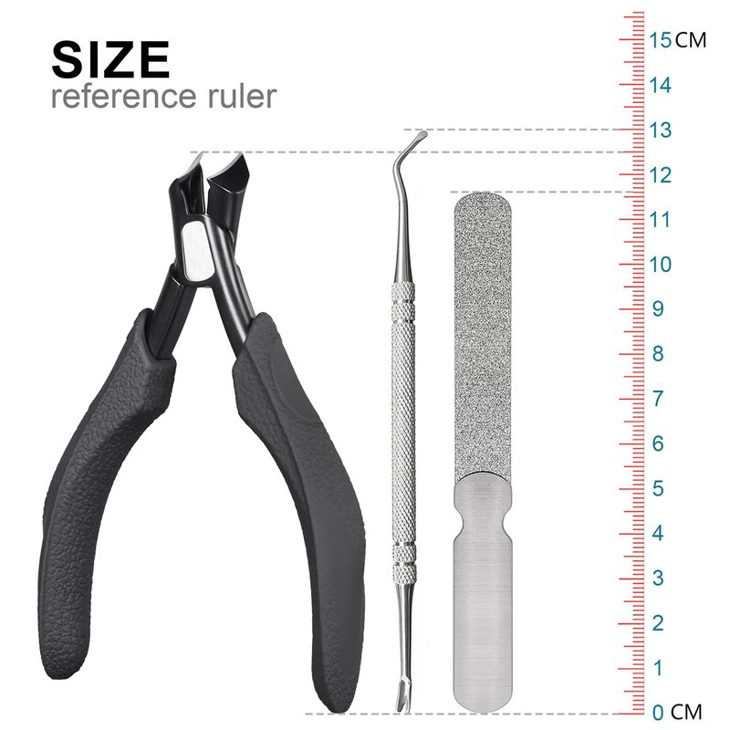 - 【Podiatrist Nail Clipper Set】: This 3-in-1 nail clipper set includes a toenail clipper, a long double-sided diamond grits file, and a double-ended dead skin fork pusher. The nail clippers are designed for ingrown and thick nails. Double-sided long nail file can better file nails to make nails smooth and flat. Double-sided dead skin fork pusher can remove the dead skin of the nails, and also can remove the dirt between the nails. Keep your hands and feet healthy and pain free;