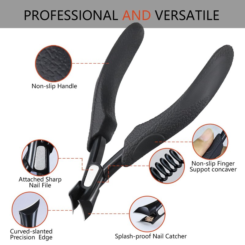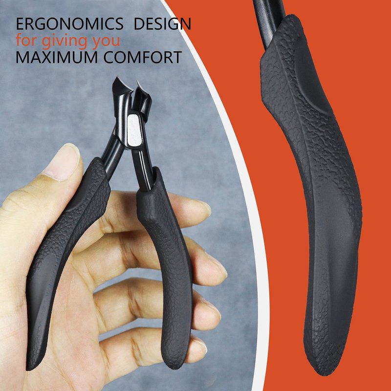 - 【Sharp Surgical Grade Stainless Steel】: This ingrown toenail clipper is made of high quality surgical grade stainless steel, which is strong and long-lasting and will not corrode or rust. Sharp angled head blades make trimming nails easy and cut thick nails effortlessly. In addition, this professional toenail clippers come with a rubber protective cover to helps protect the sharp blades when not in use;