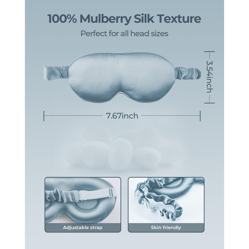All of our sleep masks are made of 100% 22 momme 6A Grade Mulberry Silk. Super soft, lightweight, smooth & breathable silk sleep masks are cooling and gentle on your face.Deep 3D contoured cups holes leave larger space for your eyes, you can open your eyes completely and blink if you wanted, whether you have lash extensions or not, the contoured cups won't damage your eyelashes. It also effectively blocks out light to have a dark surrounding night, helps to improve your sleeping. Whether you are traveling, home, airplane, car, and any other place, just enjoy sleeping in anytime and anywhere.