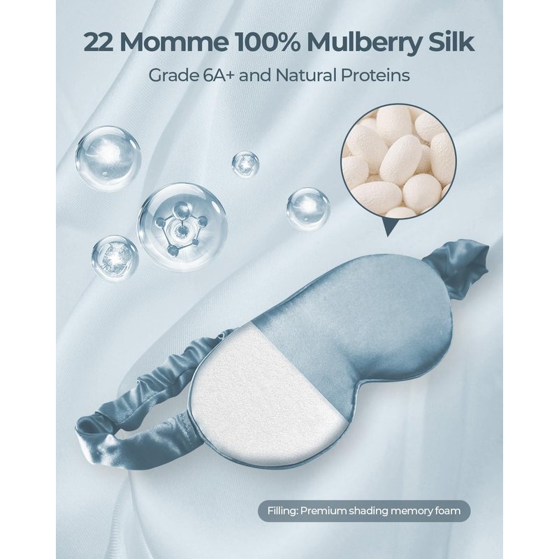 - 💯 New Improved 100% Pure Mulberry Silk: to slip into your best night's slumber only the highest grade 6a natural and organic silk for your hair and skin will do! All of our sleep masks are made of 100% 22 momme 6A Grade Mulberry Silk. Super soft, lightweight, smooth & breathable silk sleep masks are cooling and gentle on your face.