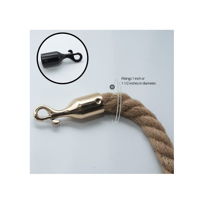 - Due to their anti-rust properties, these fittings work superbly for outdoor use, fitting to: Barrier ropes, Bannister ropes , Stair ropes, Handrail ropes, Crowd-control ropes.