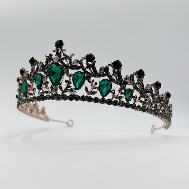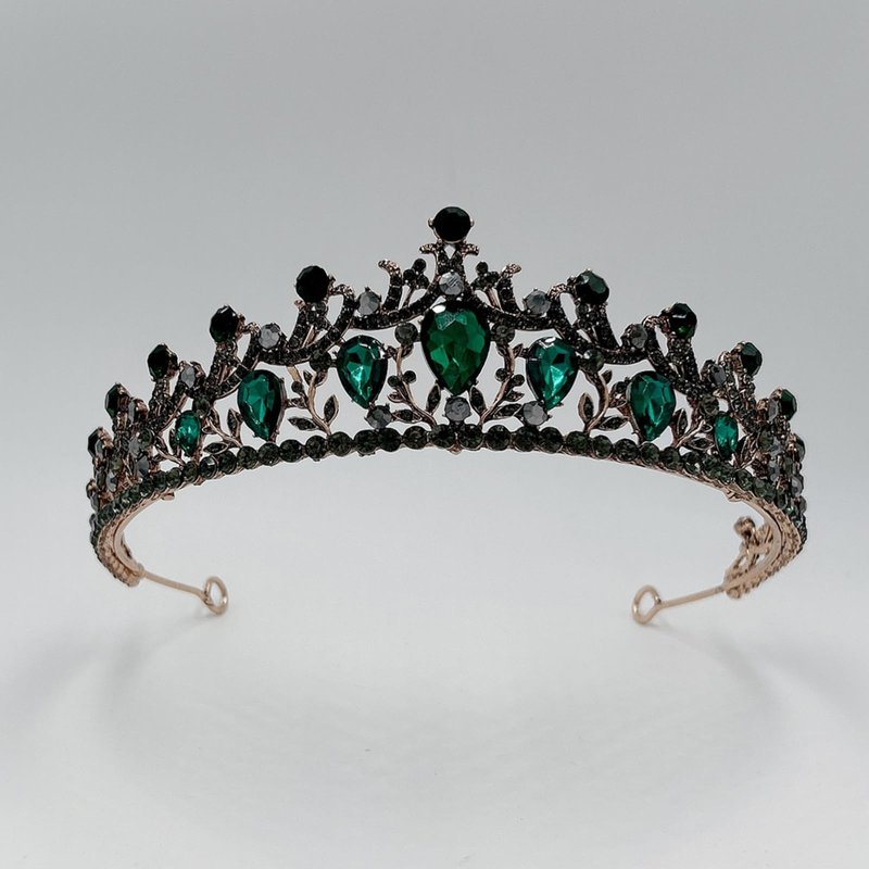 SH Green Queen Crown for Women, Wedding Tiara for Bride, Rhinestone Tiaras and Crowns, Crystal Costume Hair Accessories for Birthday Prom Pageant Prom Celebration