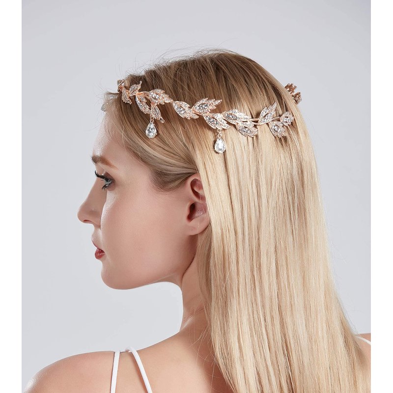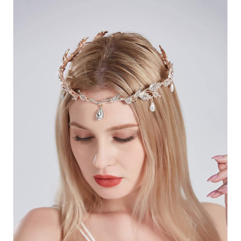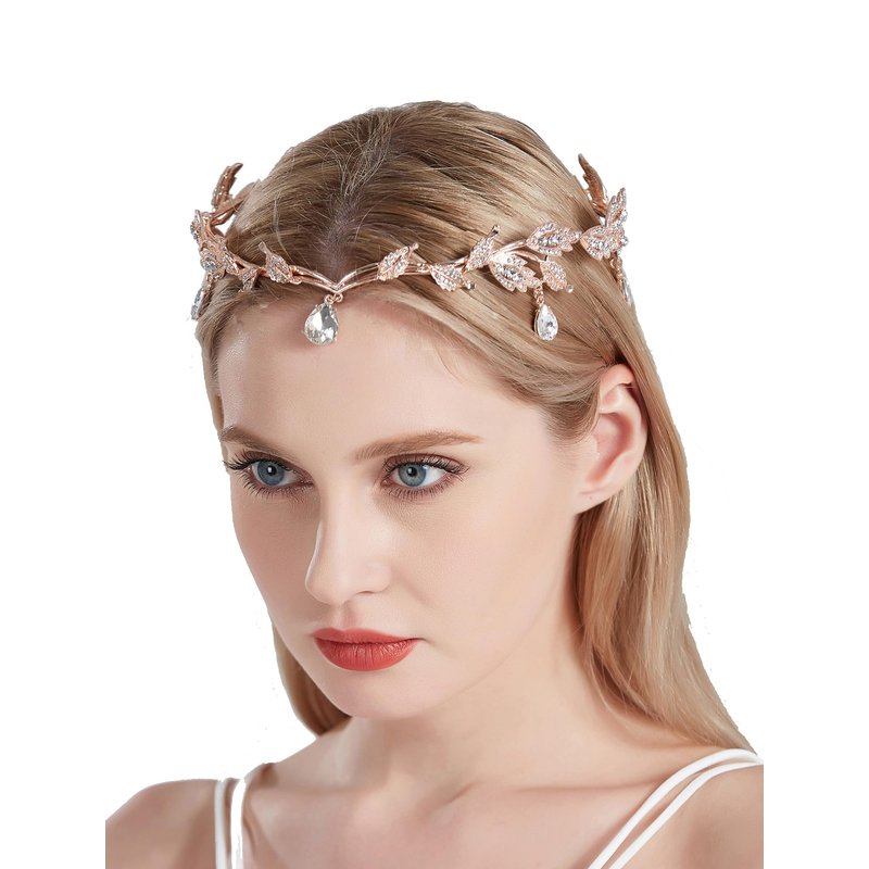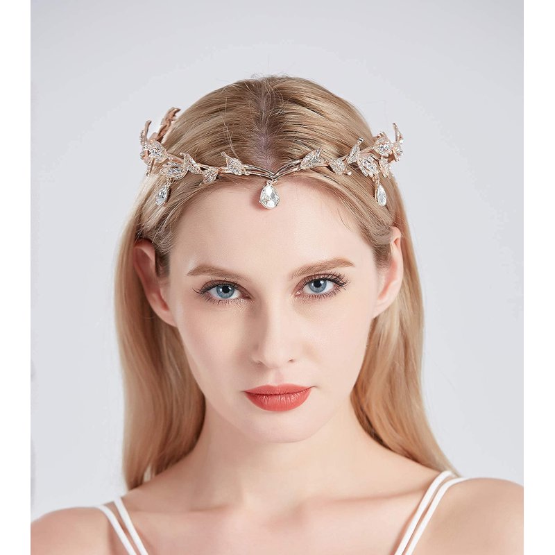 Classic Tiara Semi-circular designs with rose gold metal dotted with leaf and charming crystall brings out the best in this queen crown. Royal Masterpiece sparkling wedding tiara makes you a focus. Retro exotic crown brings you different beauty, you're the Noble Highness.