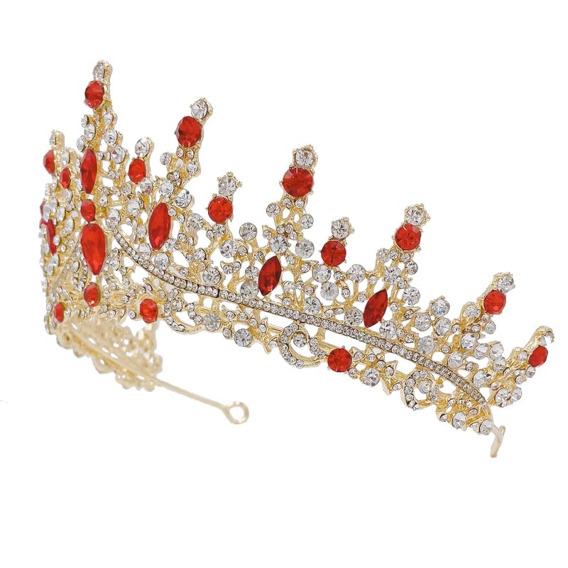 SH Wedding Tiara for Women, Rhinestone Tiaras and Crowns Bridal Tiara Headband Princess Birthday Prom Hair Accessories, Red