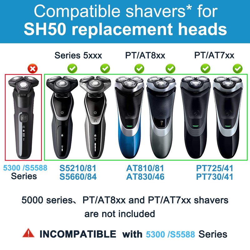 - SH50 Replacement Blades for Philips Norelco Shaver Series 5000 (S5xxx), HQ8(HQ8xxx), AquaTouch (AT8xx, AT7xx) and PowerTouch (PT8xx, PT7xx).