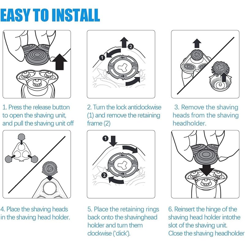 - [Easy to Replace]: These sh90/72blades replacement heads are easy to install, after installation, put a drop of oil on each head and run it for 10 seconds to help ensure its normal operation; it is recommended to replace the shaver every 12 months head for good performance.CHUKANGNAQE