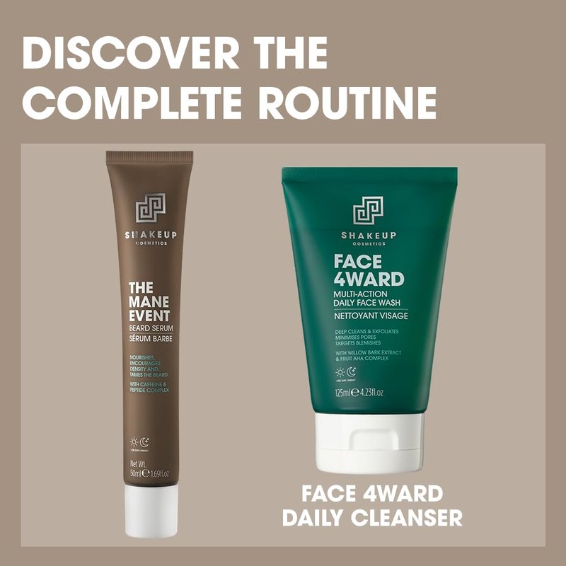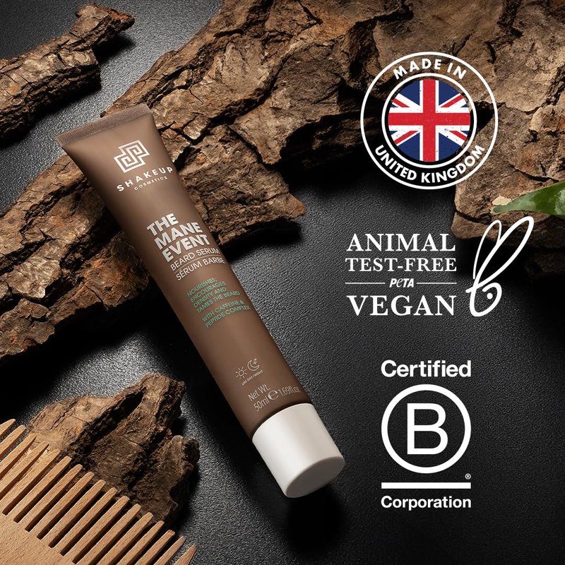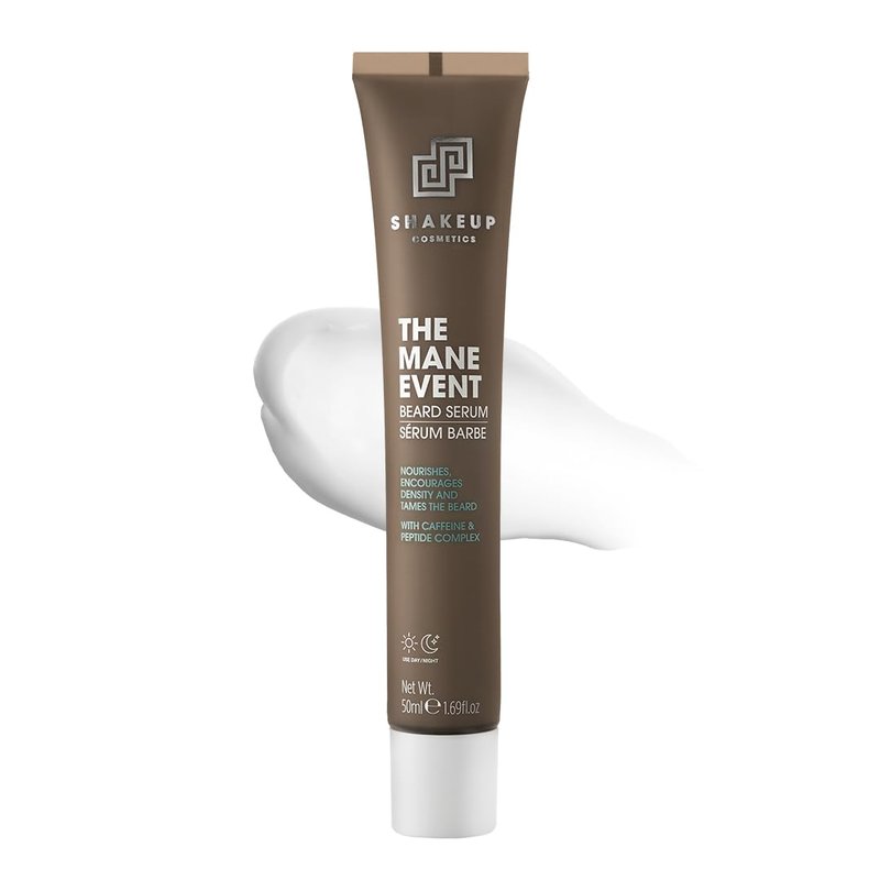 Shakeup Cosmetics Mens Beard Serum & Beard Oil, Supports Thicker & Fuller Beard, Helps Tame Dry & Unruly Hair, Nourishing with Castor Oil, Caffeine & Peptide Complex, 50ml. Aka. THE MANE EVENT