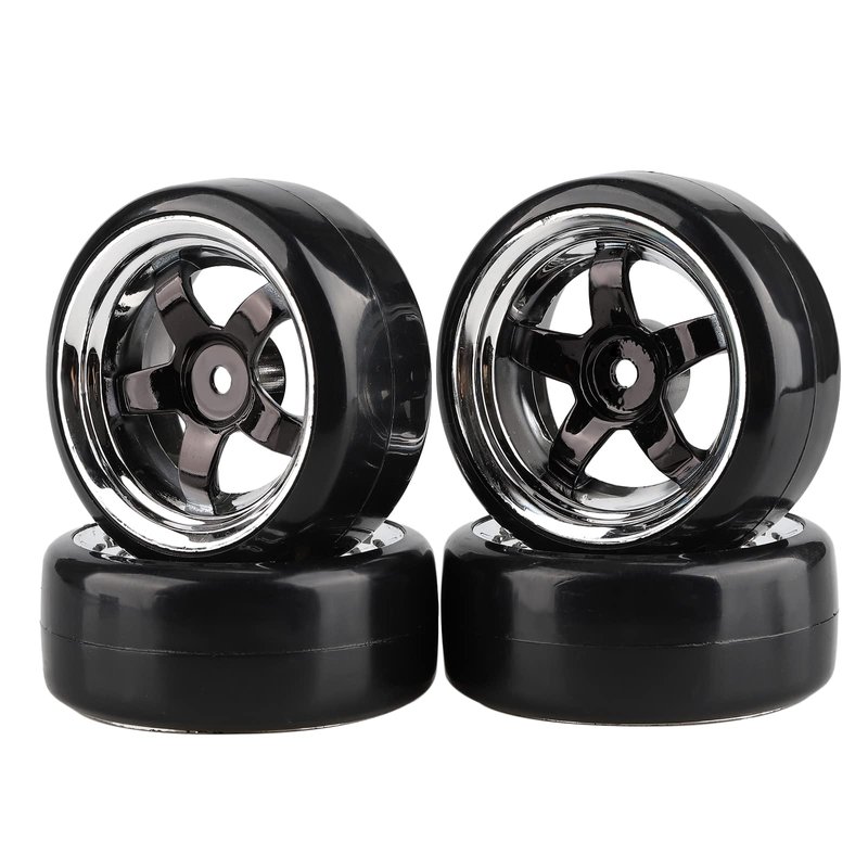 Shaluoman Plating 5-Spoke 12mm Hub Wheel Rims with Hard Plastic Tires for RC 1:10 Drift Car Color Black, 1/10 RC Tires and Wheels for 1/10 Redcat HSP HPI RC Drift Cars
