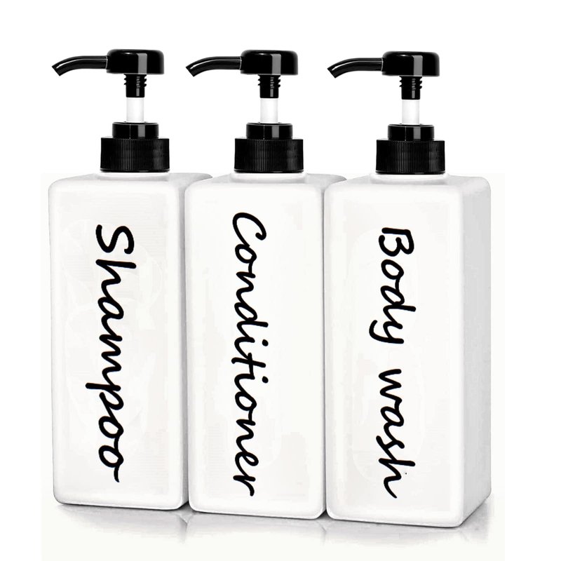 - IMMEDIATE ORDER - Including: 1 × pump bottle with ''Shampoo'' font; 1 × pump bottle with ''Conditioner'' font; 1 × pump bottle with ''Body wash'' font; 1 × packing box