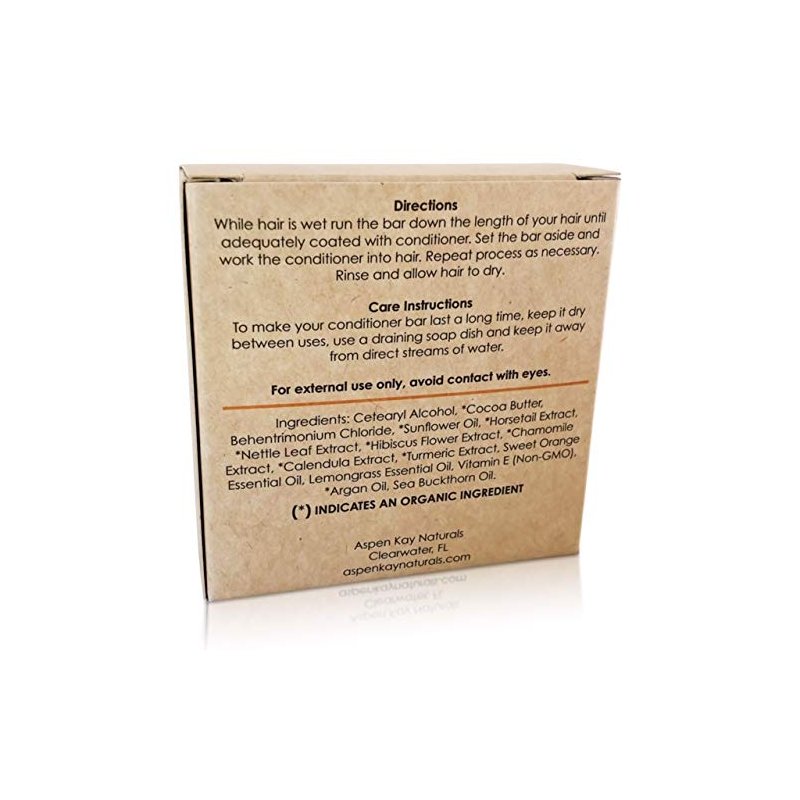- MADE IN THE USA - All Aspen Kay Naturals products are made with a whole lot of care & love in the USA. Each of our shampoo and conditioner bars are hand crafted, packaged and labeled by a real person. Nothing is mass produced.