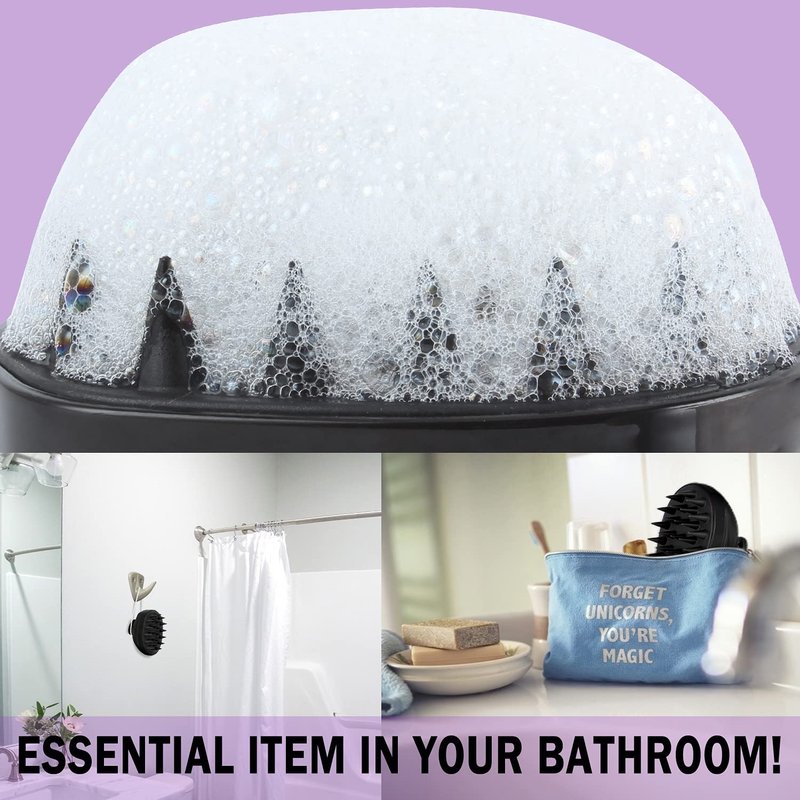 - CARE FOR THE ENTIRE FAMILY: Sosoon scalp brush will be loved by the whole family, men, women, children, even your pets too! This manual shower head massaging brush gives an all over satisfying way to deeply cleanse all hair types and soothe your scalp. It also applies to sensitive and problematic scalp. Always leave your scalp feeling fresh of build up. It tingles, relaxes and soothes, giving you all the well-deserved zen time you need after a long exhausting day