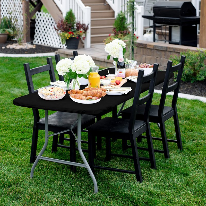 Shamrock Home Polyester 4ft Fitted Tablecloth Elastic Rectangle Table Cover, Table Cloth, Fitted Table Covers for 4 Foot Tables, Picnic Table Cover Indoor Outdoor, Washable 48x24 inch, Black