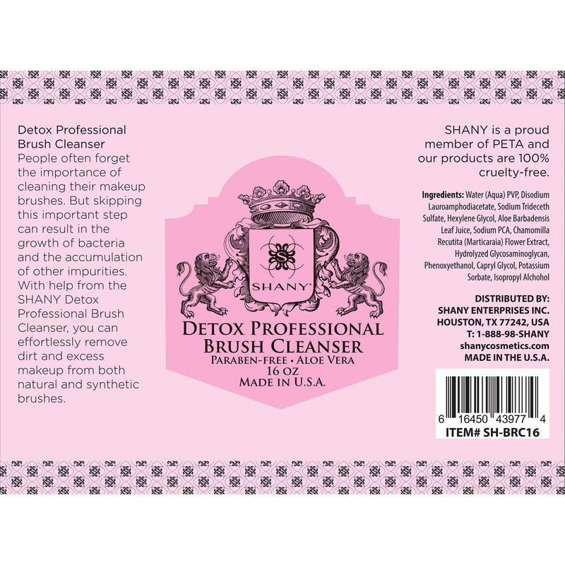 SHANY DETOX Professional Makeup Brush and Sponge Shampoo, Brush Cleanser, Removes dirt, Makeup from brushes and Sponges - Paraben Free, Vegan, Cruelty Free - Instant Dry - 16oz