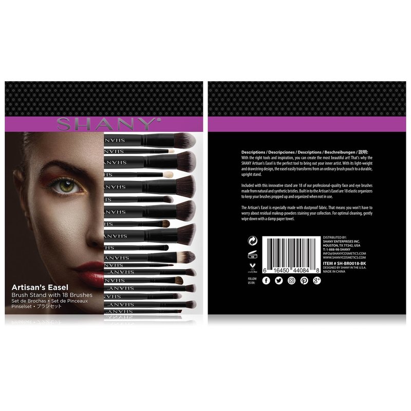 - Brush Like a Pro: 18pc brush set is equipped with printed brush instruction in every package. Brush pouch with elastics doubles as upright easel – can be held or placed on a flat surface. Use SHANY Detox brush cleansers shampoo for cleaning your brushes.