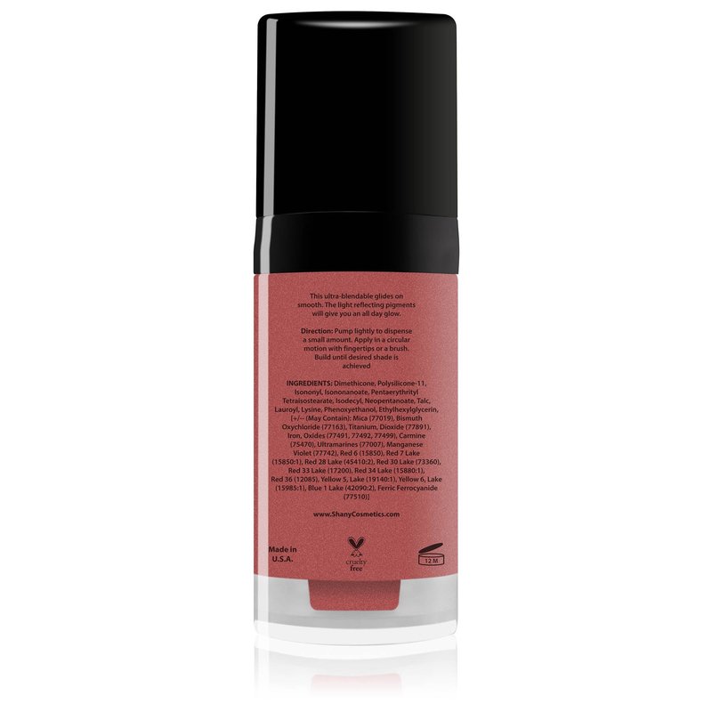 - Smooth Finish: A little goes a long way with SHANY nourishing Paraben Free Liquid Blush. This long-lasting Cream to powder blush goes on easy ,will not crack or flake. Its satin texture glides and blends easily on your skin.