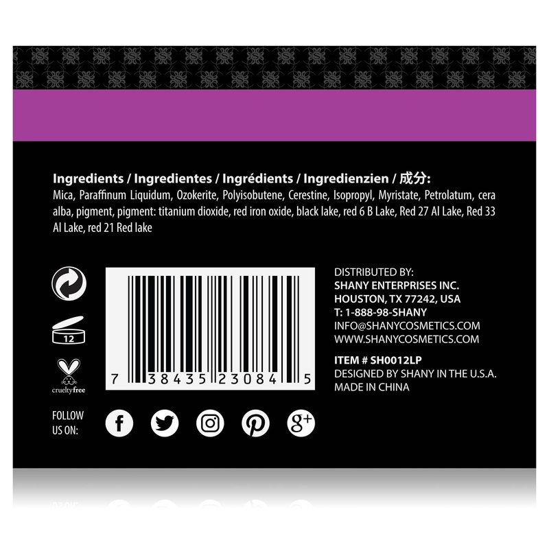 - LIPSTICK COLORS INCLUDED: Coral, Champagne nude, Rose, Cranberry, Frost Pink, Hot pink, Fuchsia, True Red, Pinky peach, Terracotta, Wine and Violet. Lipstick colors are selected to match most skin tones and textures. Use SHANY Lip Primer before use.