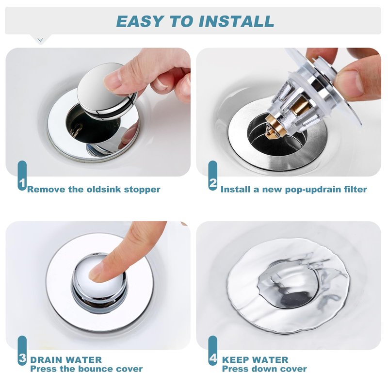 - 2.Easy to Use Pop Up Design: Our Pop Up Sink Drain Stopper is designed for convenience. Simply push down to seal the drain or pop up to quickly release the water. No more hassle with traditional stoppers that get stuck or fail to seal properly.