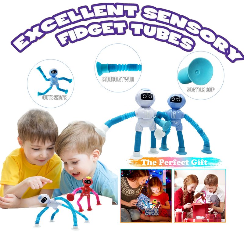 - Fun Pop Tubes Suction Cup Toys: They help to develop fine motor skills, hand-eye coordination, and problem-solving abilities.Spaceman Robot toys tubes come in fun, vibrant colors and can be connected and disconnected in various ways, allowing children to use their imaginations to make all sorts of things with them.