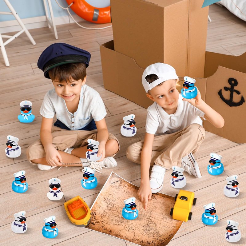 - What's in the Package: you will receive 24 cruise ship ducks, paired with 24 black mini sunglasses, and the ducklings have sound devices installed on the bottom, which can be pressed and squeezed to make a sound, enough to share with family or mates