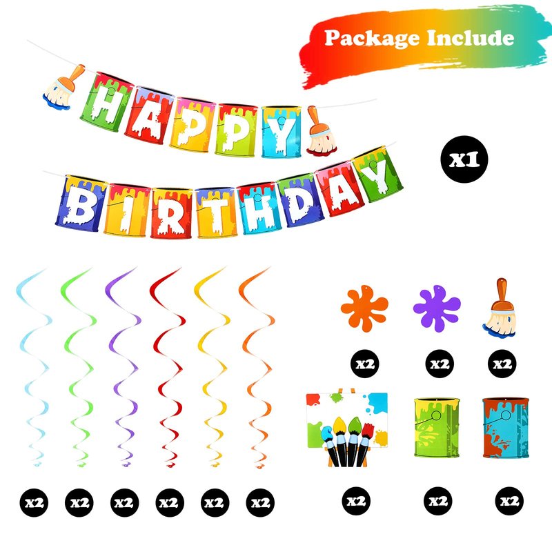 - Art party supplies: you will get 1 piece art painting themed birthday hanging banner and 12 pieces art hanging swirl and 12 pieces art print card decorations, a nice combination for you to prepare a pleasant party with family and friends