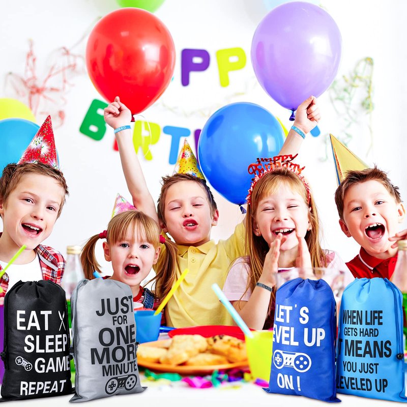 Features: Bring more fun to the party: This game night party decoration for various game theme parties, computer shows, party decorations or daily using, also suitable to be chosen as a nice gift for video game party or birthday party. Useful video game bag: These small party favor bags could be the nice gift wrapping or daily using bags to hold game bracelets, candies, cookies, snacks or other small items, show a vibrant and bright appearance and very practical. Specifications: Gift bag material: non woven fabric Silicone bracelet material: silicone Keychain material: silicone, metal Color: as picture shown Gift bag size: approx. 12.6 x 8.7 inches/ 32 x 22 cm Silicone bracelet size: approx. 2.5 x 0.5 inches/ 6.5 x 1.3 cm Keychain size: approx. 2.04 x 3.5 inches/ 5.1 x 8.8 cm Package includes: 12 x Gift bags 12 x Silicone bracelets 12 x Keychains Notes: Manual measurement, please allow slight errors on size. The color may exist slight difference due to different screen displays.
