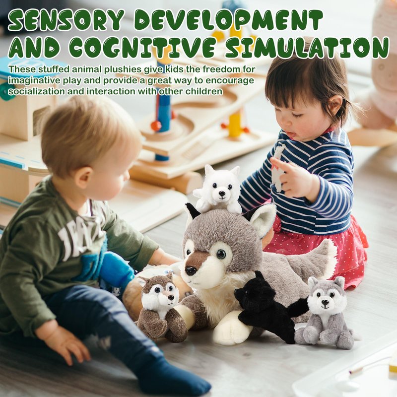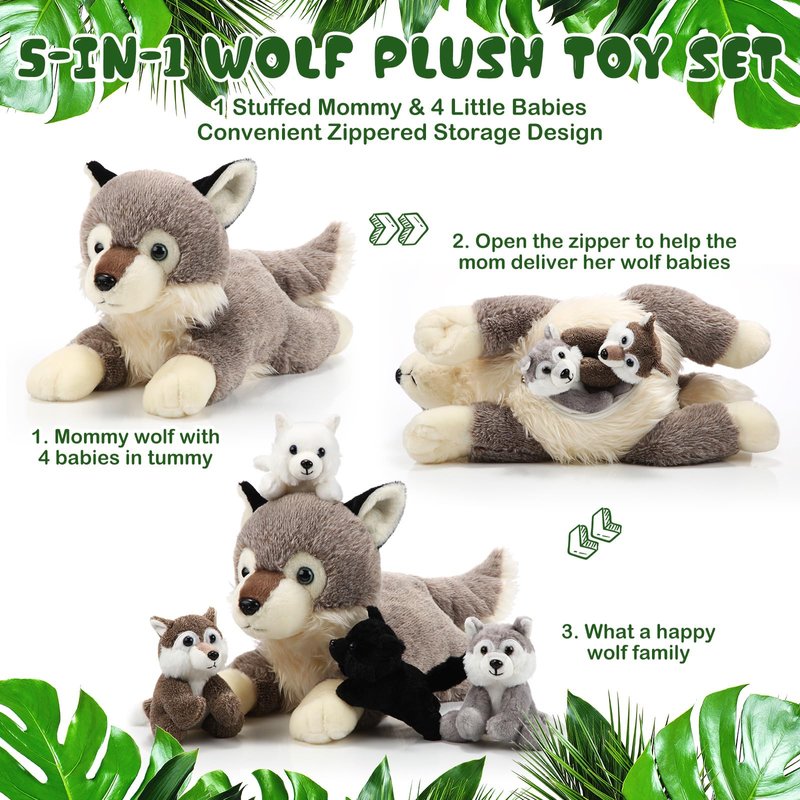 - Fun and Educational: the wolf plush toy set is fun and cute, you can play the game with other people, the wolf mother has a zipper on her belly, open the zipper to help her leave 4 cute little wolves, experience the process of raising babies, creative and interesting, enhance interaction, and at the same time can cultivate hands ability and improve imagination
