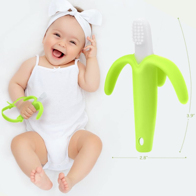 - Package Included: You will receive 1 Banana Teething Toothbrush and 1 silicone rope