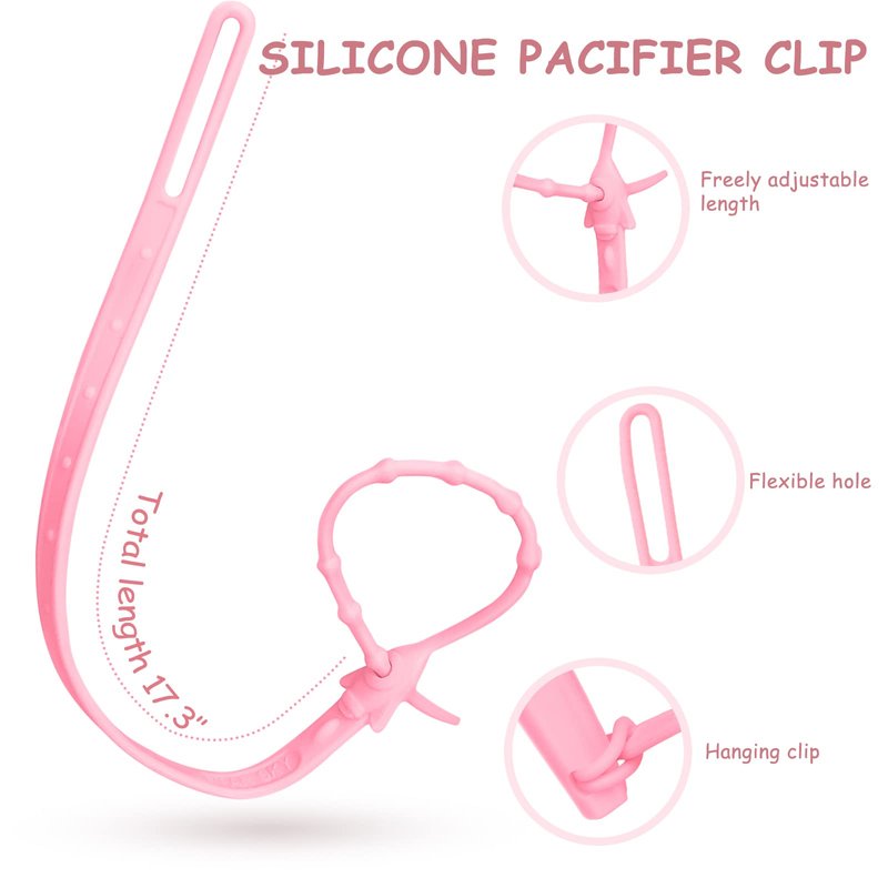 - Silicone Rope: This is silicone material, durable and lightweight, attach easily to pacifiers, soothies, nuks, MAMs, drool bibs, clothes, teether, teething toys, blankets, strollers, car seats, etc