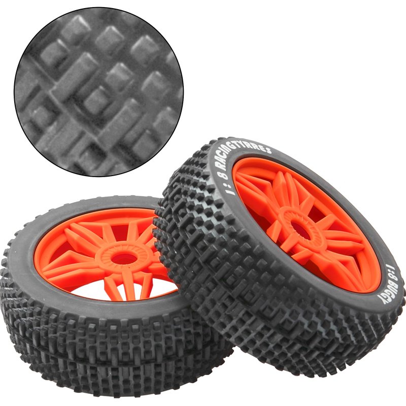 - Note: The 1/8 buggy tires and wheel rims are separated (NOT Glued), you have to glue them together by yourself before run it ; Please check the size info before you buy