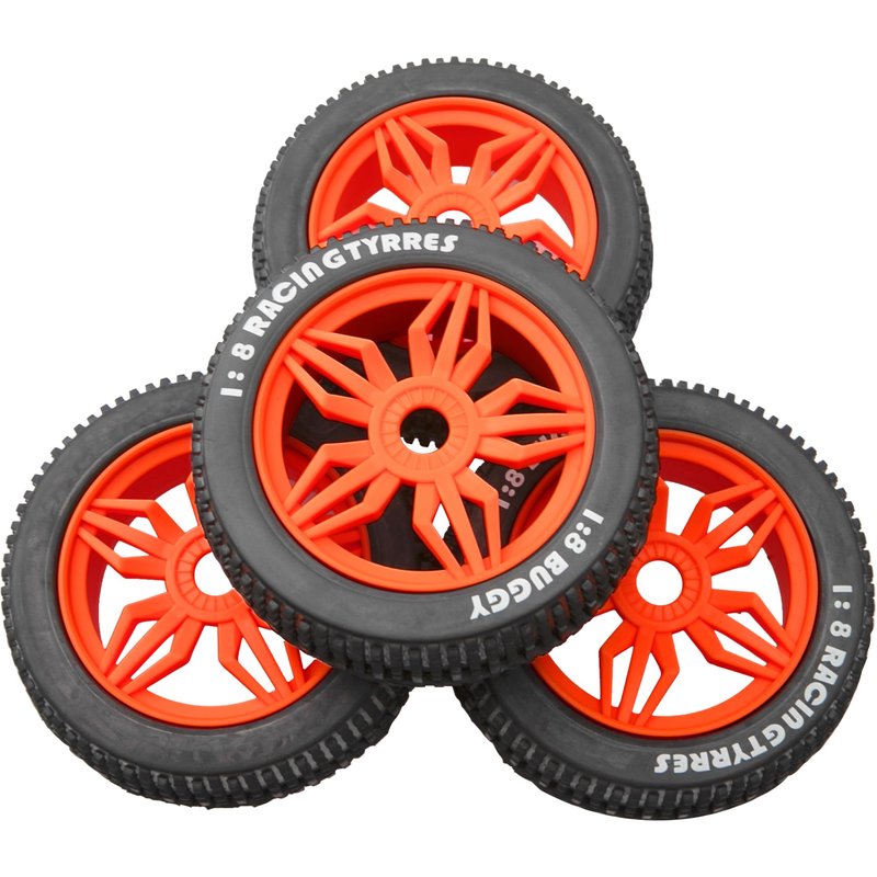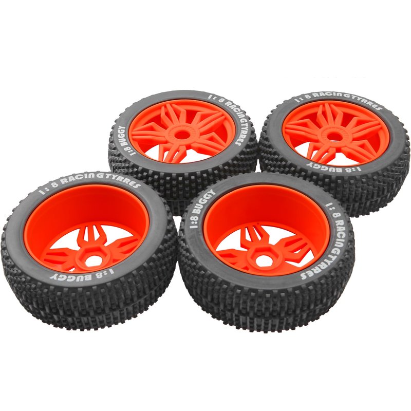 - Hexagon coupling: 17mm (Does not Included),pack of 4pieces 1/8 rc car tire set.There are 5 color rims to choose from.