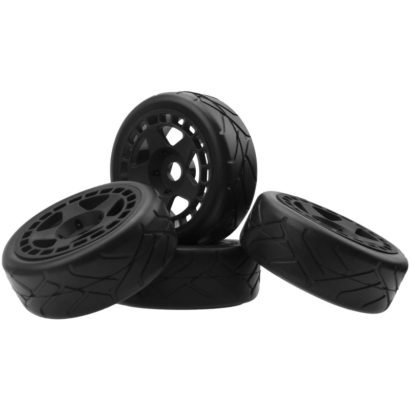Fit for 1/8 RC on road racing cars and buggies ;The 1/8 scale buggy street tires compatible with 1/8 Typhon Redcat Team Losi VRX HPI Kyosho HSP Hobao 1/8 RC On Road Racing Car which has the 17mm wheel hex.