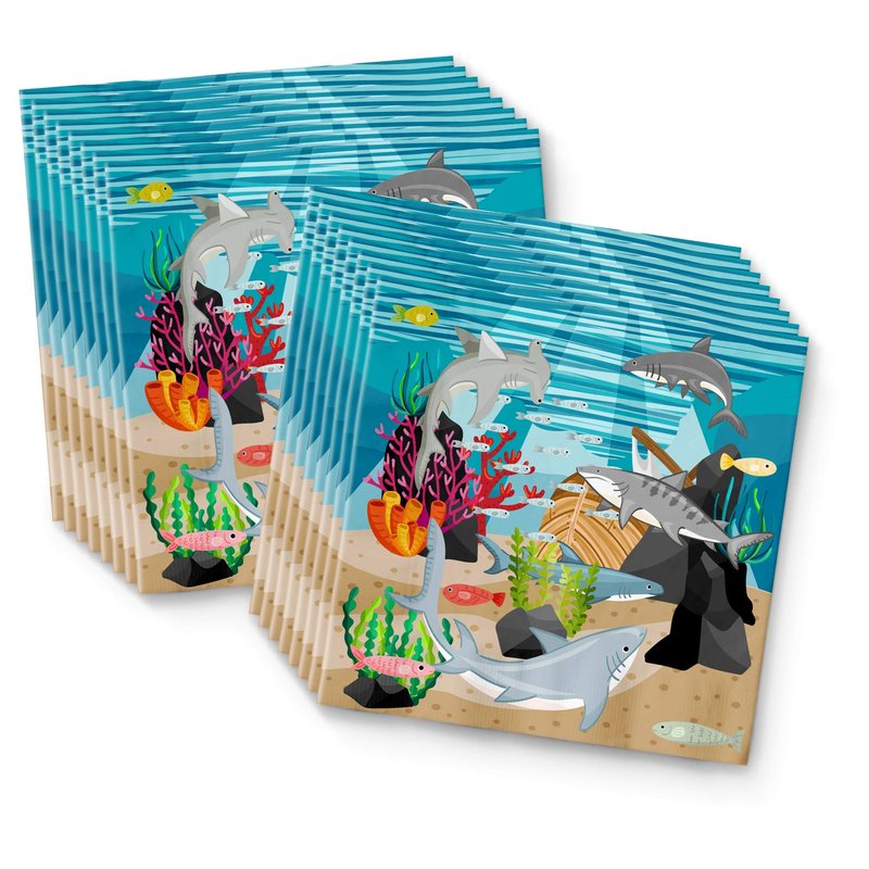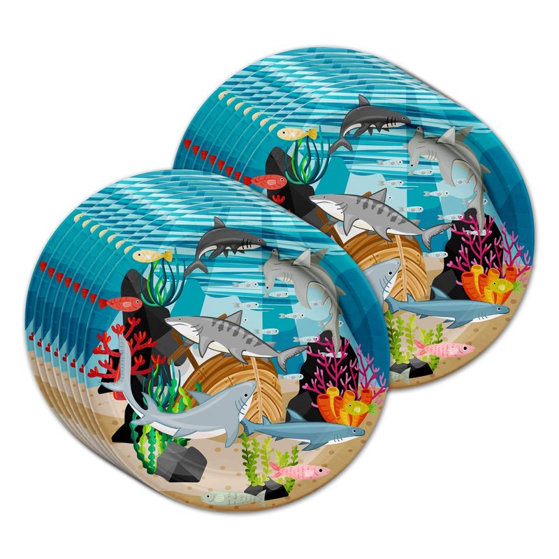 Shark Birthday Party Supplies - Ocean Animal Theme Party Supplies - Coral Reef Party Supplies | Tableware Set Includes Plates, Napkins and Cups | Kit for 16