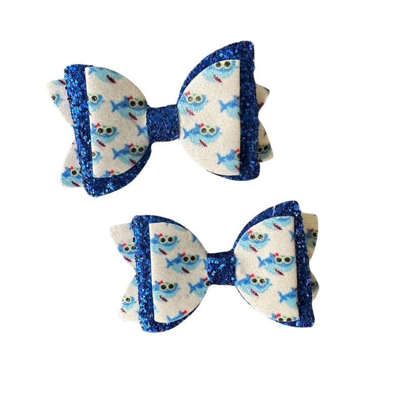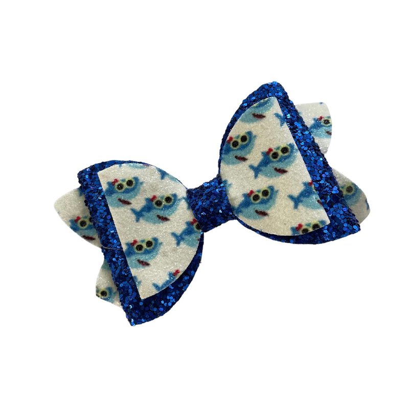 Shark Glitter Hair Bow Set/Birthday Bows/Cosplay Bows/Cartoon Inspried Hair Bows by Inspired Bows