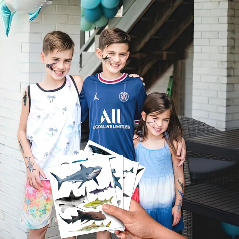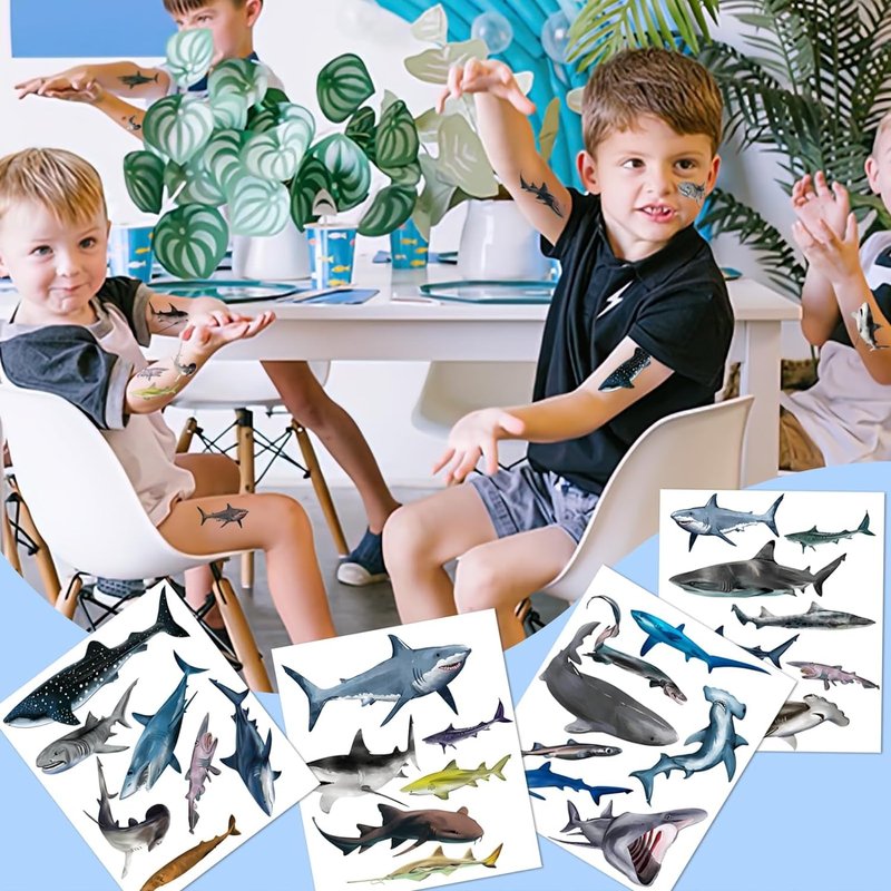 - Friendly to Skin Shark party decorations,our temporary tattoos have been put through rigorous party testing and are 100% guaranteed to last all day,Non-toxic, harmless and tasteless, the tattoos do not cause irritation